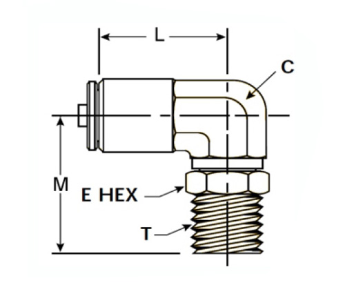 1569S Push do otočného 90 ° mužský lakeť